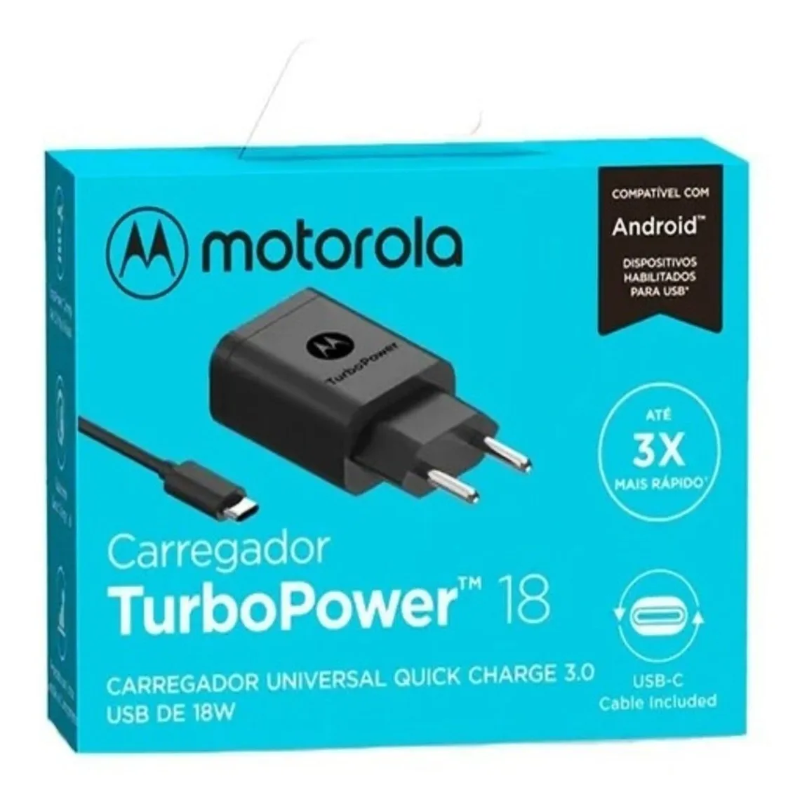 Carregador Motorola Original Turbo Power 18W com cabo USB Tipo C, 100-240V